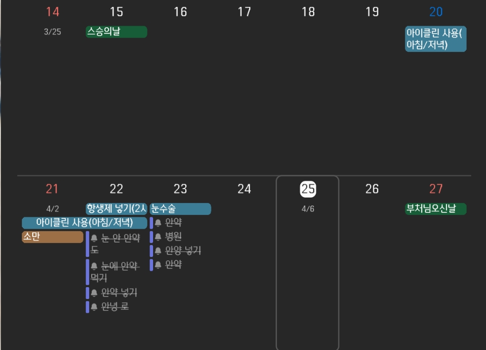 수술하고 7일동안 눈에 물 닿으면 안돼서